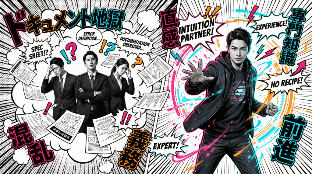 Business and system development are the same. If you stop every time to hold a meeting about “exactly how many grams of salt to add” (the specs), the delicious pasta (the business opportunity) will get soggy and overcooked. What the modern era demands isn’t a massive, heavy blueprint; it’s this “chef-like intuitive judgment.”