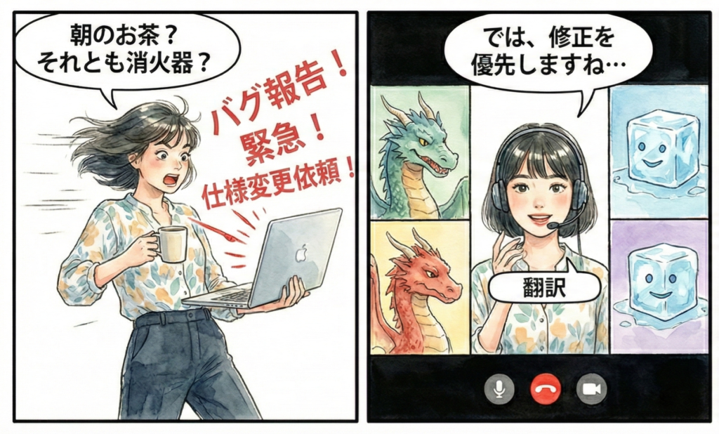 私は、通常、ワークスペースかメールを開くことから一日を始めます。ある日は、クライアントからのタスク確認の数行で終わることもあります。またある日は、「小さいようで小さくない」ミーティング、あるいは「間違いなく大規模な」ミーティングが入っていることも。そして、時には目覚めてすぐに、本番環境から送られてくるバグ報告を目の当たりにすることもあります。時々、面白く考えるんです。「朝の気分は、最初のクリック次第だ」と。今日はどの難関から始まるのだろうか?と。午前中は、クライアントからの要求変更、開発者からの仕様再確認、スケジュール調整、上司からの締め切り催促など、混乱しがちです。しかし、この混乱の中でこそ、私はある種の「慣れ親しみ」を感じます。それは、私が「すべての繋がりが生み出されるべき場所」という、まさに自分の居場所に立っている感覚です。